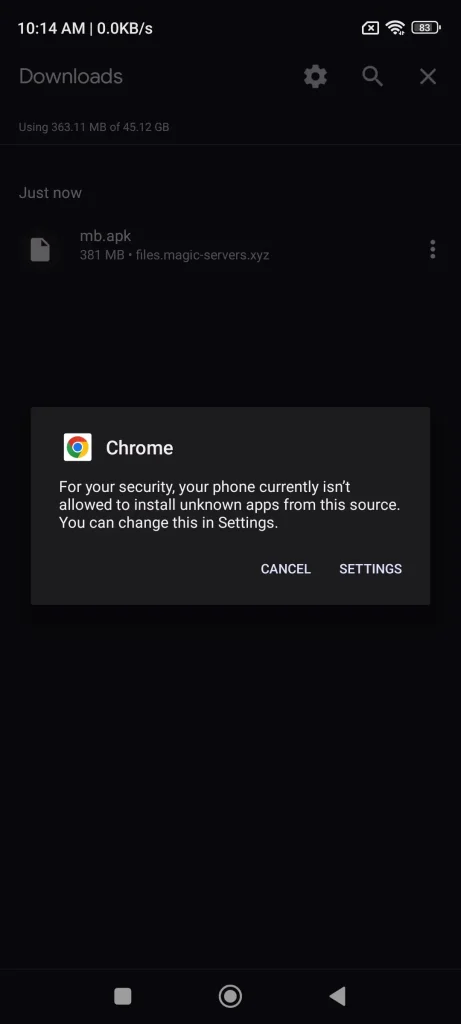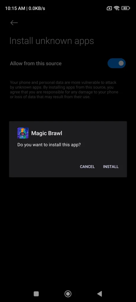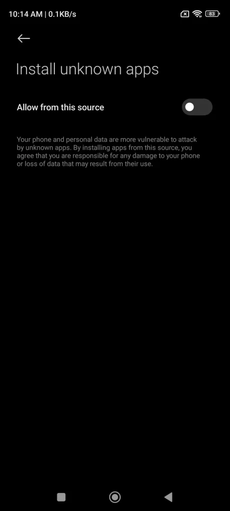 - After that, the system will show a warning stating “Your device is not allowed to install unknown apps from this source” The source here is the file manager or the browser, whichever you used.